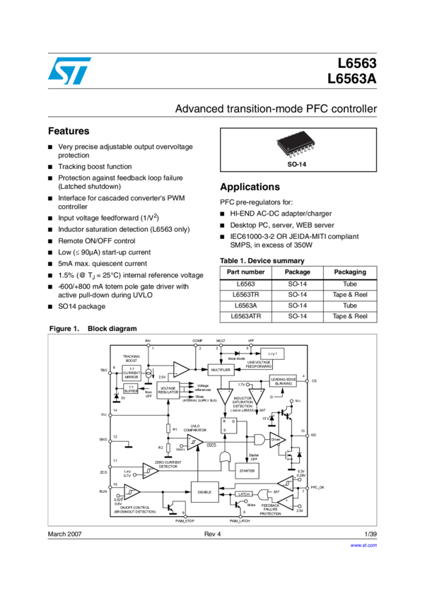 Power Factor Correction PWM CONTRLR 0.05mA 14-Pin SOIC T/R