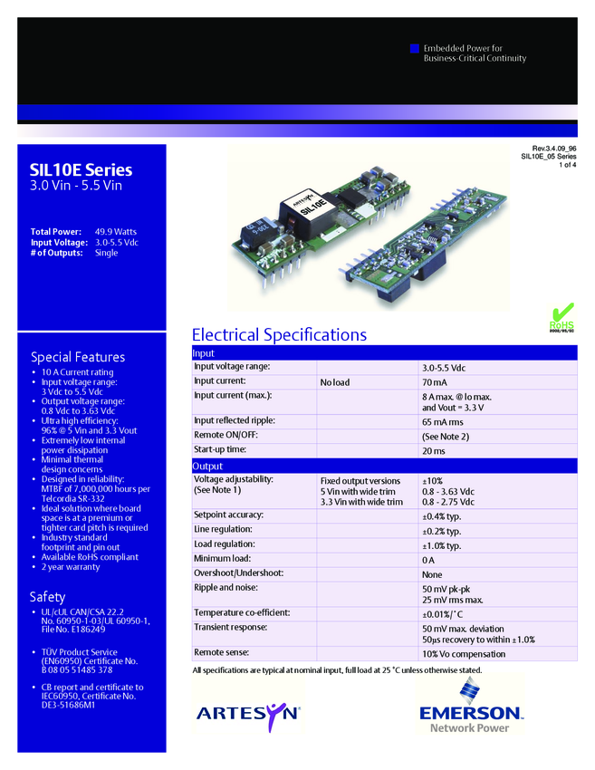Module DC-DC 1-OUT 1.8V 10A 19.8W 10-Pin SIL
