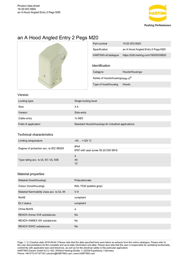 Obudowa tulejki 19 20 003 0620 Harting 1 szt.