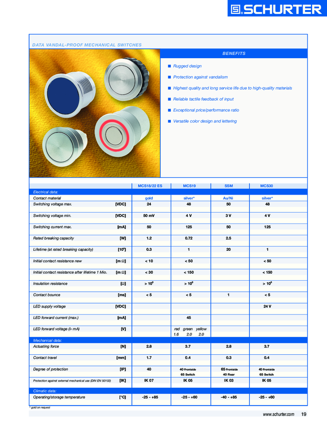 Electromechanical Switch Vandal-Proof Mechanical Switch N.O. SPDT 0.125A