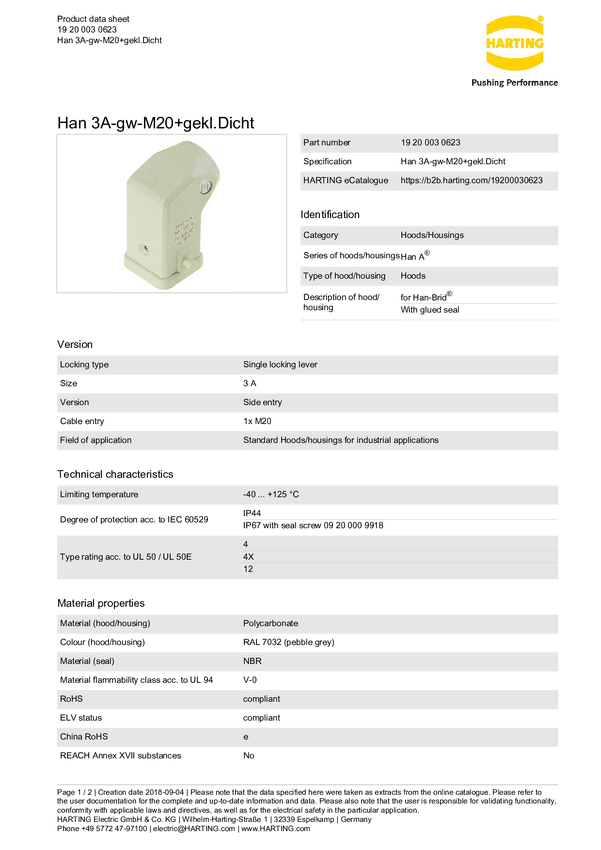 Obudowa typu Hood 19 20 003 0623 Harting 1 szt.