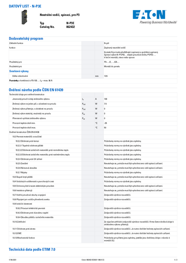Przewód neutralny Eaton N-P3E 1 szt.