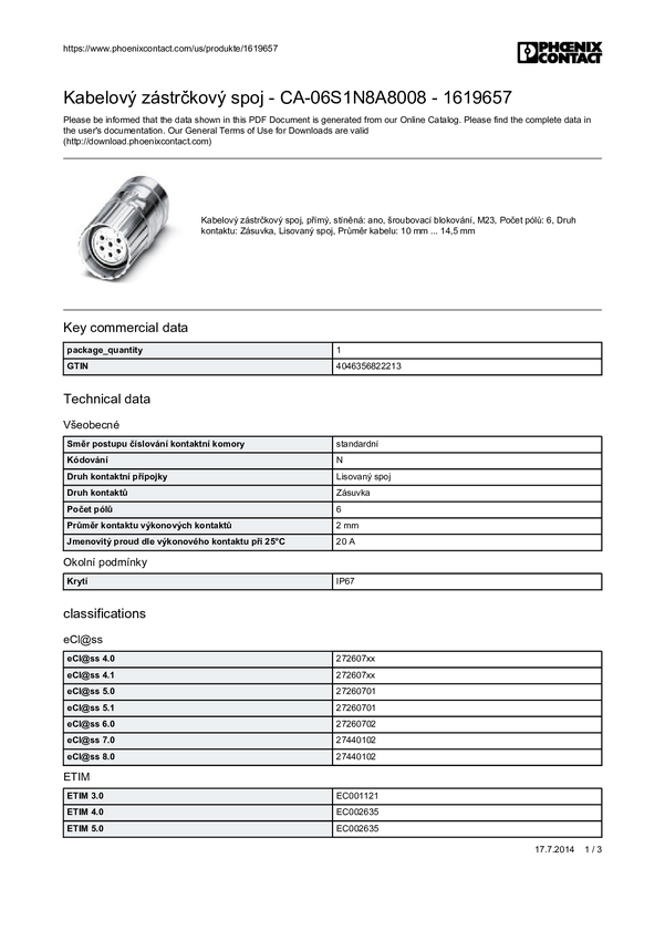 Złącze 1619657 CA-06S1N8A8008 srebrny Phoenix Contact Zawartość: 1 szt. 1619657 CA-06S1N8A8008 srebrny Phoenix Contact Z