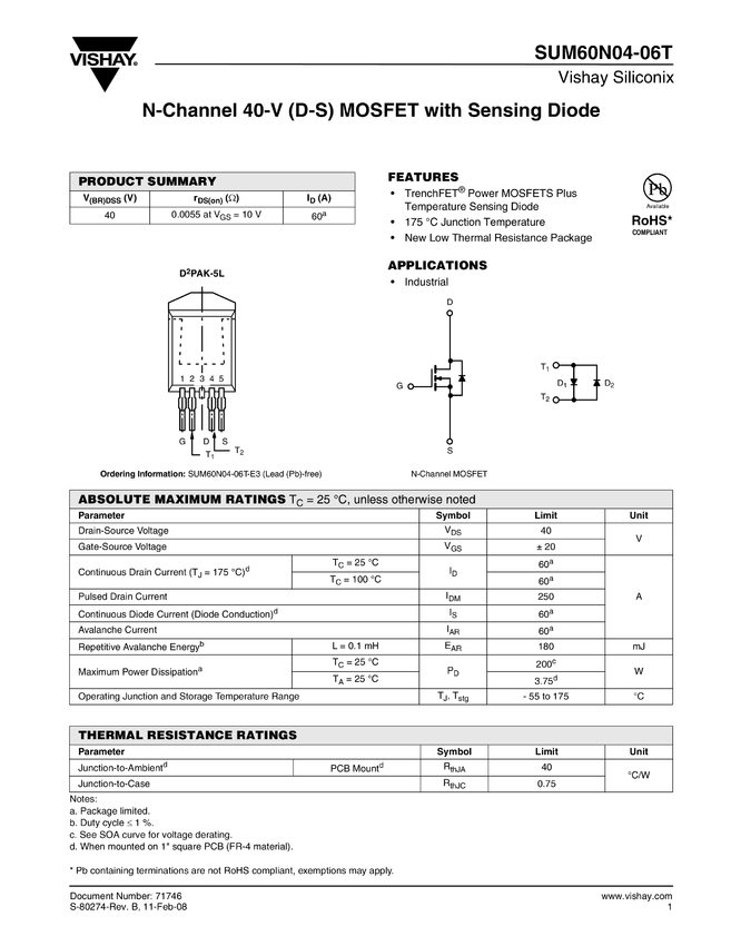 N-Channel 40-V (D-S) MOSFET with Sensing Diode
