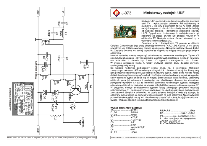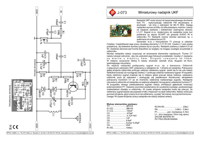 J-073 Miniaturowy nadajnik UKF
