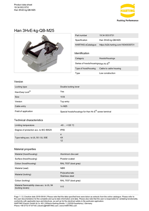 Obudowa złącza żeńskiego Harting 19 34 003 0731, odlew aluminium, 1 szt.