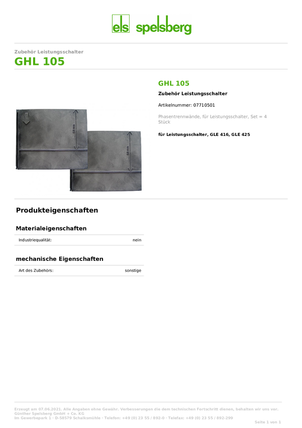 Akcesoria do wyłącznika Spelsberg GHL 105 1 szt.