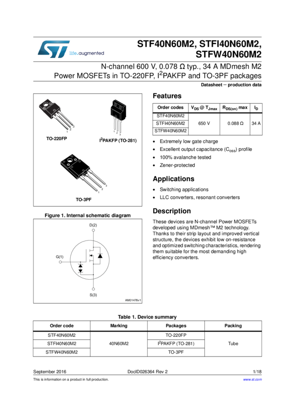N-channel 600 V, 0.078 Ohm typ., 34 A MDmesh M2 Power MOSFET in D2PAK package