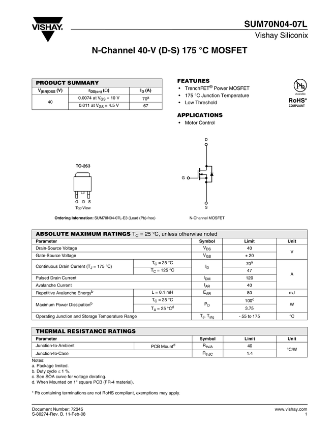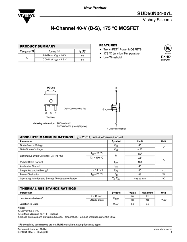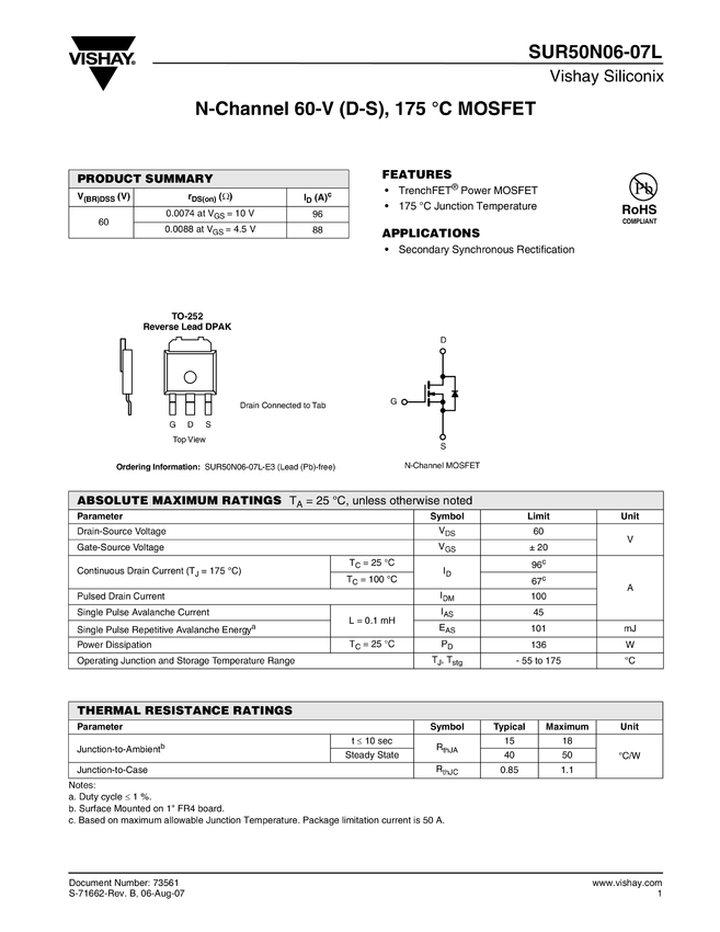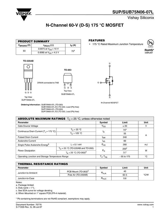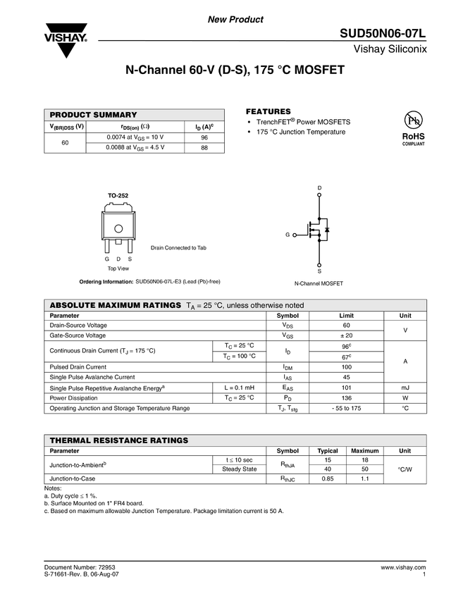 'N-Channel 60-V (D-S), 175C MOSFET'