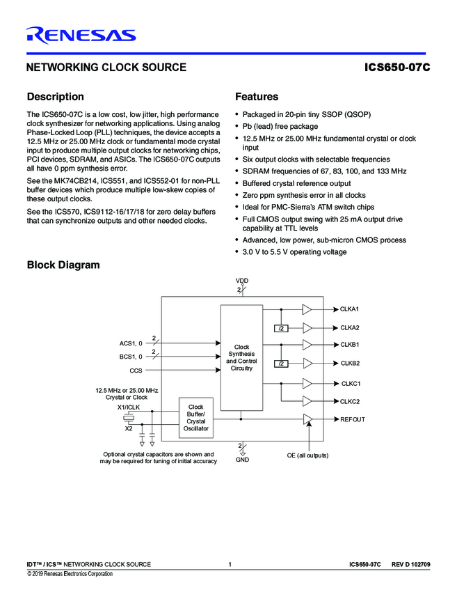 FemtoClock Crystal-to-LVHSTL Frequency Synthesizer