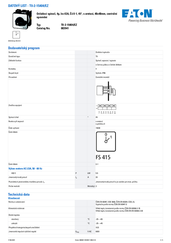 Eaton 083943 T0-1-15451/IVS Wyłącznik 1 szt.