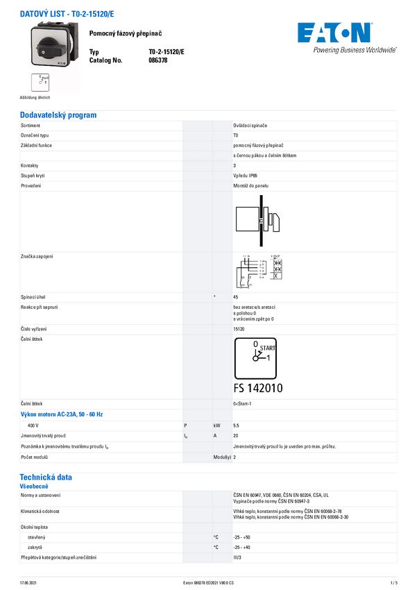 Eaton 086378 T0-2-15120/E Przełącznik fazy, pomocniczy 1 szt.