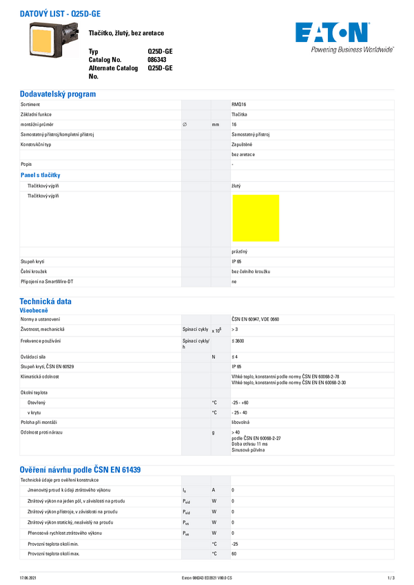 Eaton 086343 Q25D-GE Przycisk 1 szt.