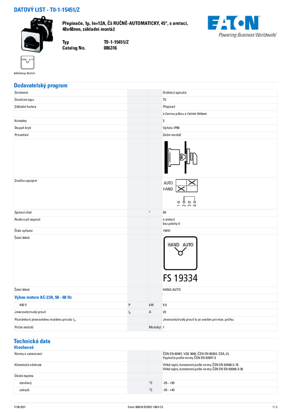 Eaton 086316 T0-1-15451/Z Wyłącznik 1 szt.