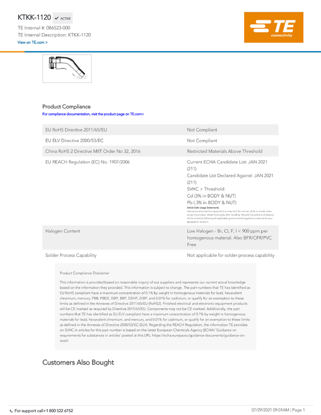 TE Connectivity 086523-000 TE RAY Pre-Fab Components, 1 szt.