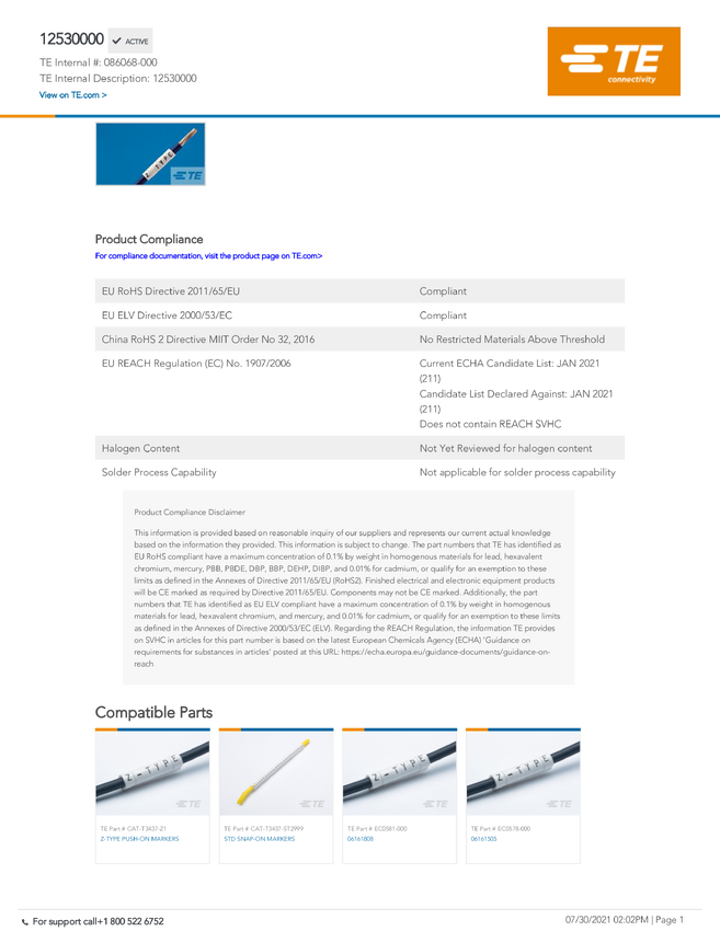 Oznacznik na przewody TE Connectivity TE RAY Cable Identification - Non-Computerized 086068-000, 1 szt.
