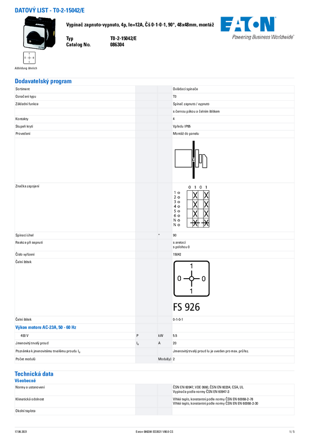 Eaton 086304 T0-2-15042/E Przełącznik ON/OFF 1 szt.
