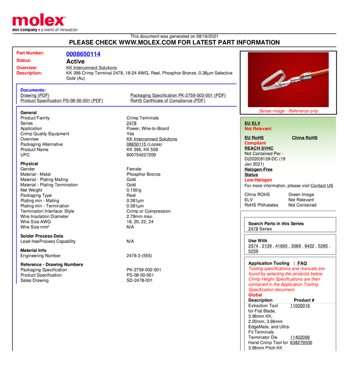 Złącze 08650816 Molex MOL Power & Signal Sol. Molex Zawartość: 1 szt.