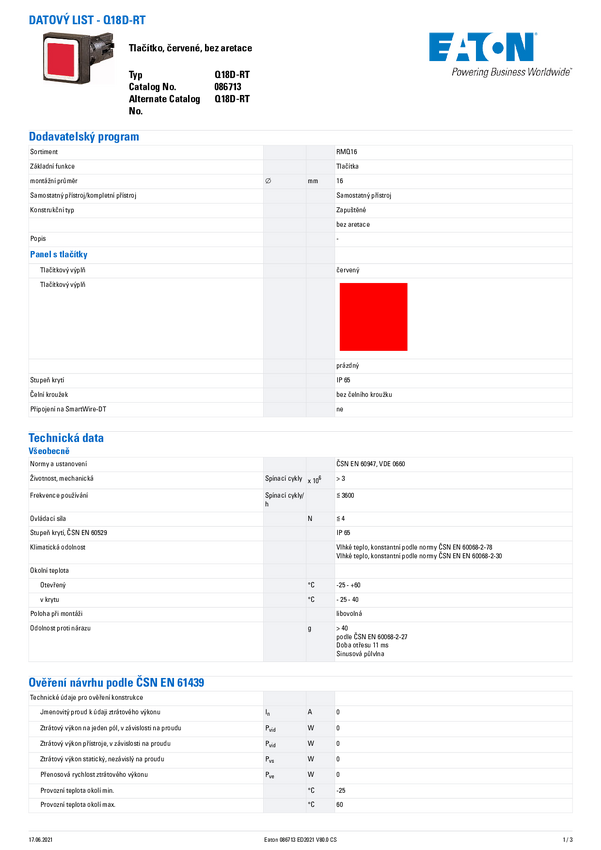 Eaton 086713 Q18D-RT Przycisk 1 szt.