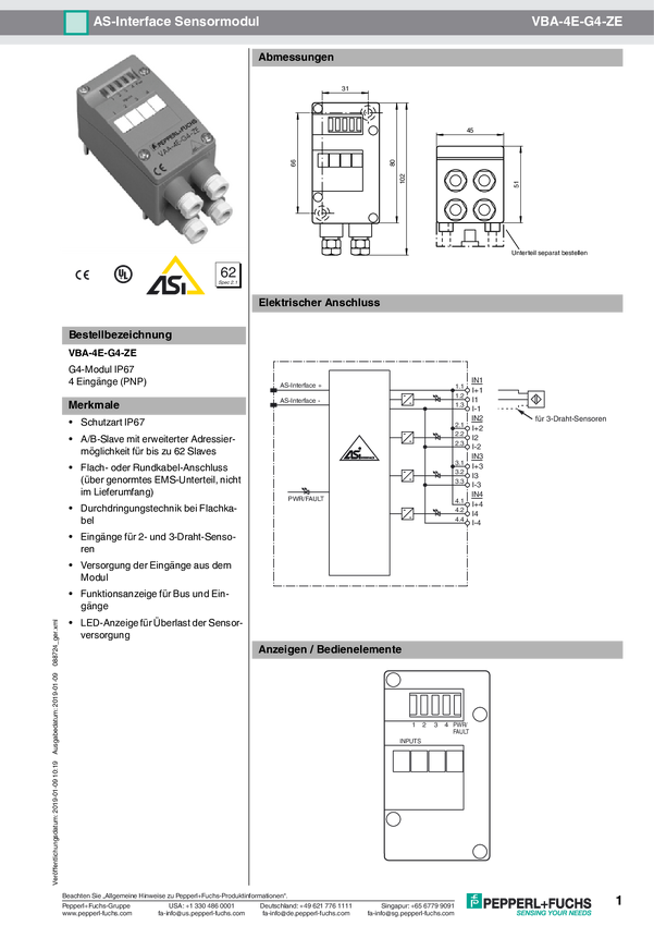 Rozdzielacz czujnik / element wykonawczy, aktywny Pepperl+Fuchs VBA-4E-G4-ZE 088724 1 szt.