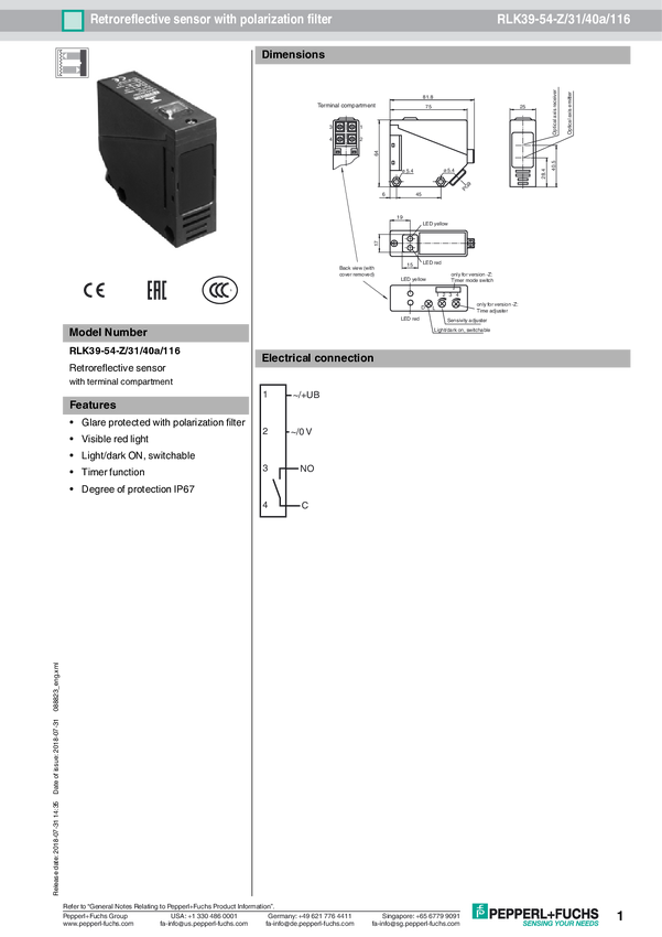 Czujnik fotoelektryczny Pepperl+Fuchs 088814 1 szt.