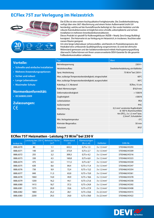 Mata grzewcza Danfoss ECFlex 50T#088L6387 088L6387, 1 szt.