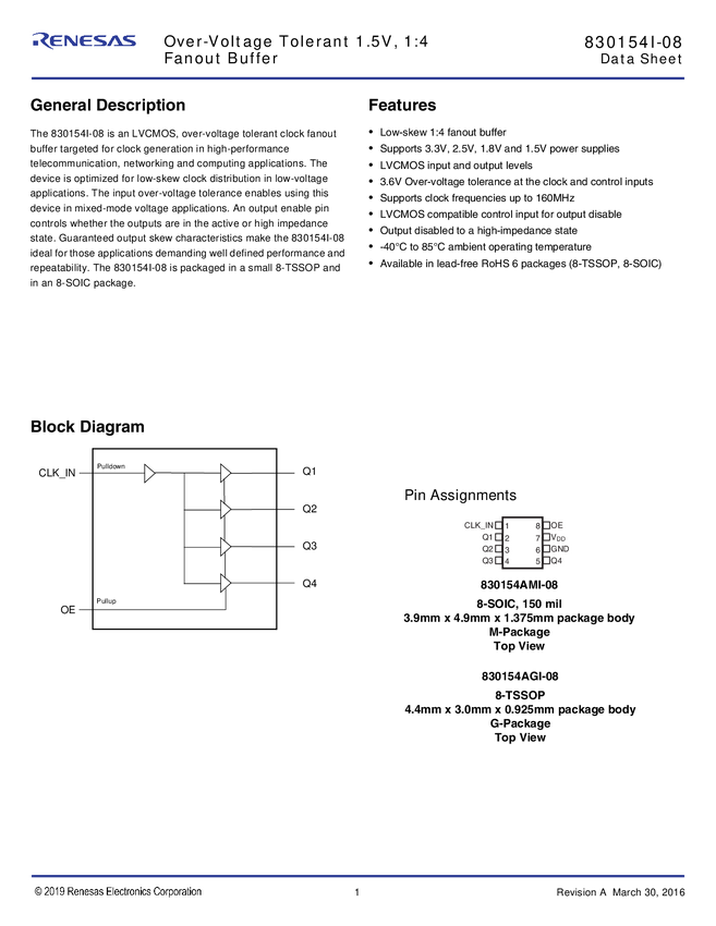 Over Voltage Tolerant 1.5V,1:4 Fanout Buffer
