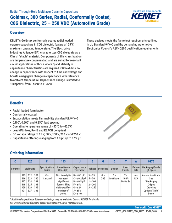 Cap Ceramic 33pF 50V C0G 5% Radial 5.08mm 125°C T/R