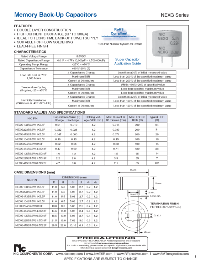 Cap 0.47uF 5.5V -20% to 80% 1000 hr (14.5 X 18mm) Radial Cylindrical 5.08mm 70°C