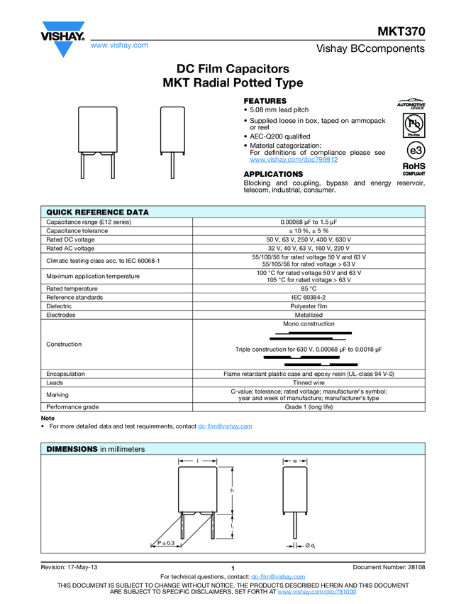 Cap Film 0.01uF 100V PET 10% (7.2 X 2.5 X 6.5mm) Radial 5.08mm 105°C T/R