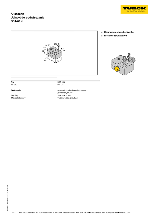 Turck 6947211 Zacisk mocujący BST-08N 1 szt.