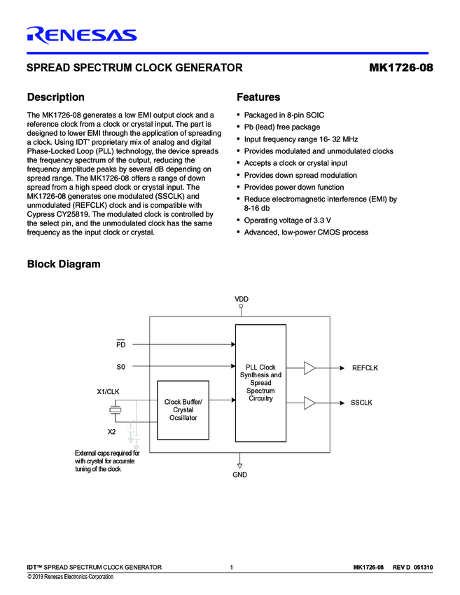 PLL Clock Generator Dual 8-Pin SOIC N T/R