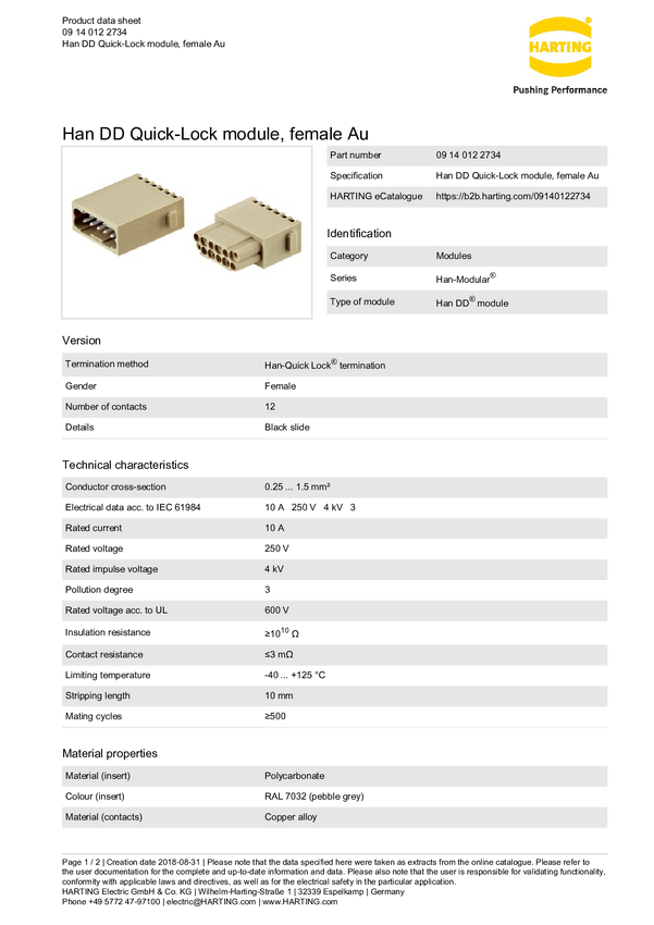 Złącze przemysłowe 09140122734 Harting Zawartość: 1 szt.