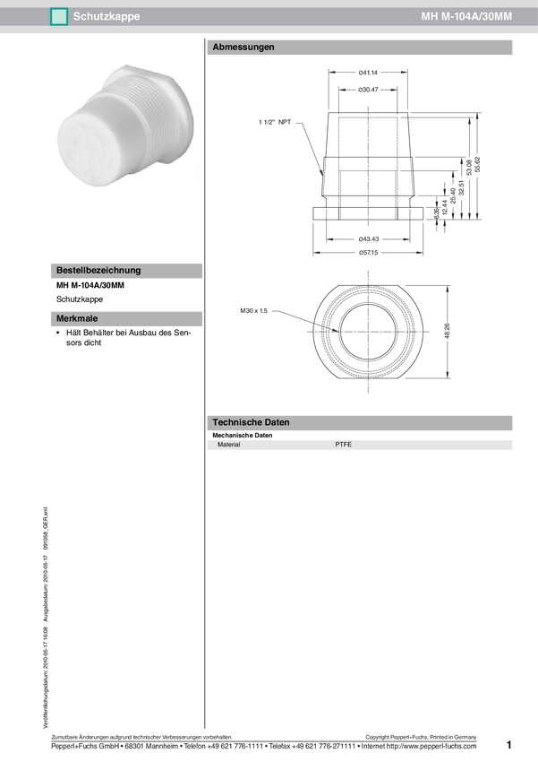 Pepperl+Fuchs 091058 Nasadka ochronna MH M-104A/30MM 1 szt.