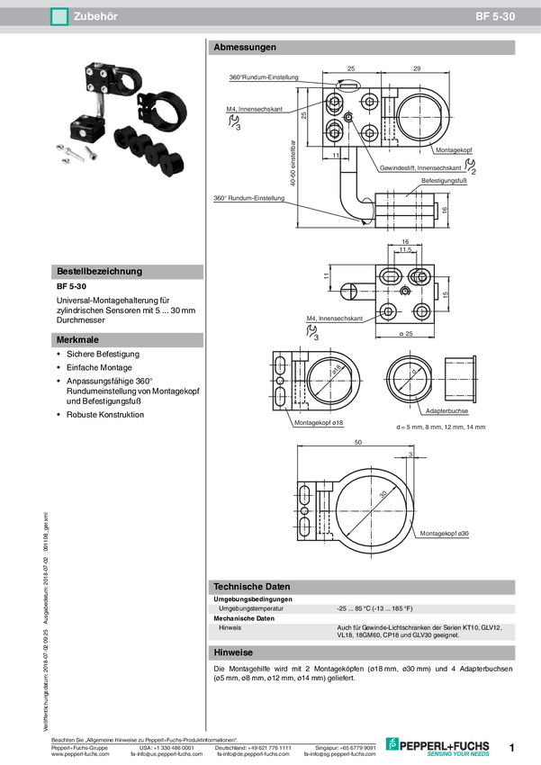 Pepperl+Fuchs 091198 Kołnierz mocujący BF 5-30 1 szt.