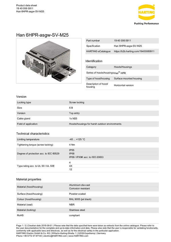 Obudowa podstawowa Harting 19 40 006 0911, odlew aluminium, 1 szt.