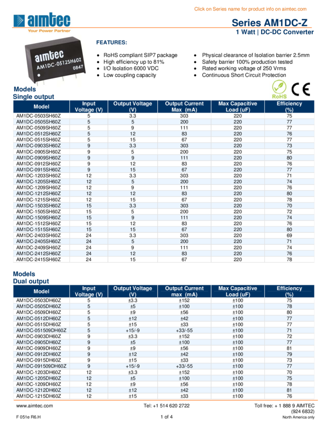 Module DC-DC 2-OUT ±5V ±0.1A 1W 5-Pin SIP Tube
