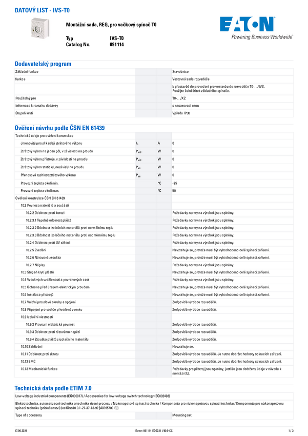 Akcesoria montażowe Eaton IVS-T0 1 szt.