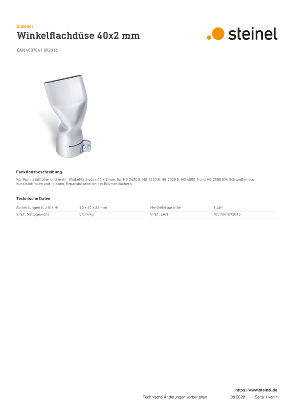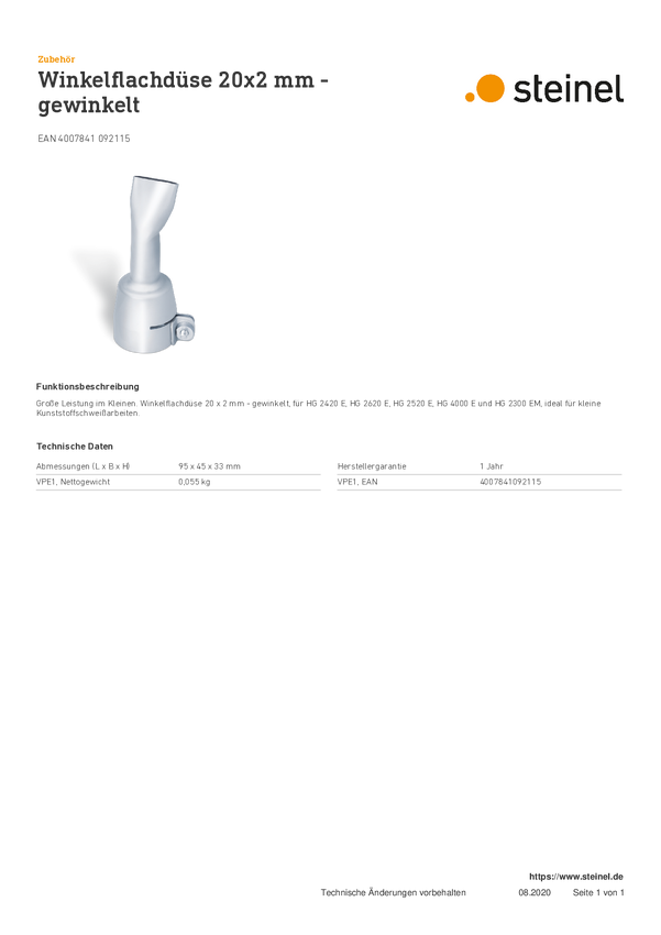 Dysza płaska kątowa Steinel 092016 Pasuje do marki (opalarki) Steinel