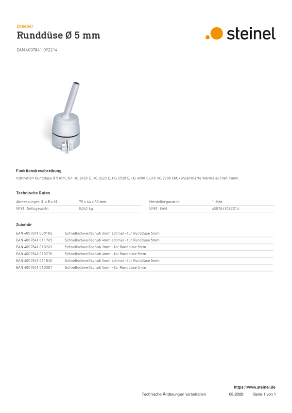 Dysza okrągła Steinel 092214 Pasuje do marki (opalarki) Steinel