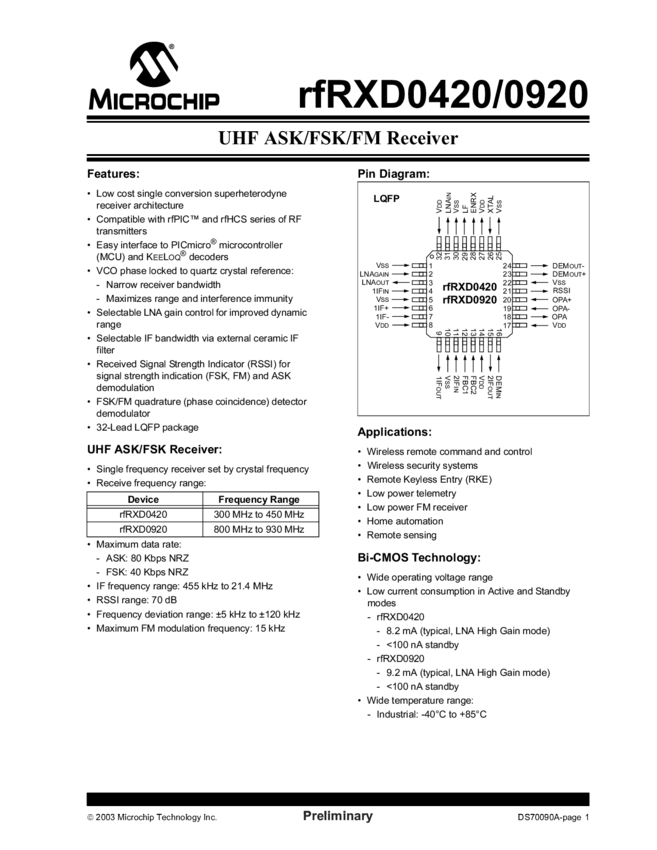 rfRXD0420/0920 UHF ASK/FSK/FM Receiver (03/18/2003)