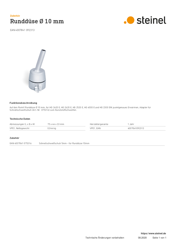 Dysza okrągła Steinel 092313 Pasuje do marki (opalarki) Steinel