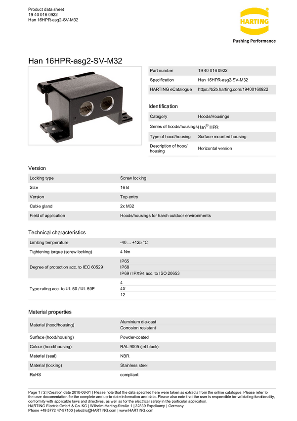 Obudowa podstawowa Harting 19 40 016 0922, odlew aluminium, 1 szt.