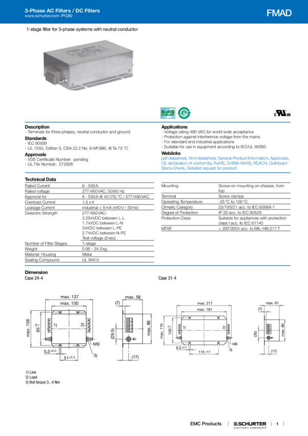 FMAD FILTER 3PH+N 1ST 8A 480VAC