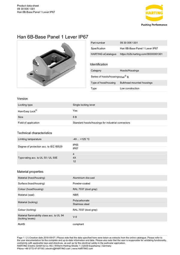 Obudowa montażowa 09300061301 09 30 006 1301 Harting 1 szt.
