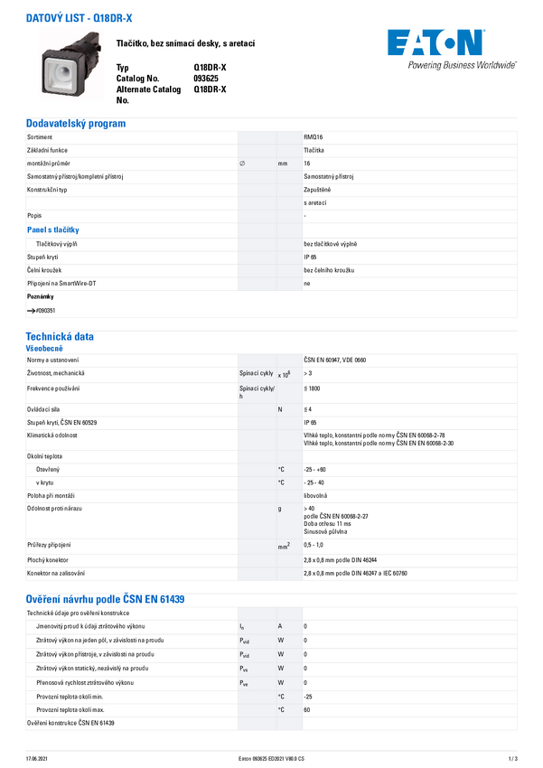 Eaton 093625 Q18DR-X Przycisk pierścień przedni z tworzywa sztucznego 1 szt.