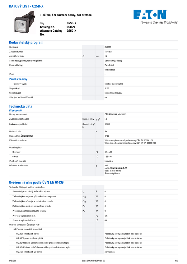Eaton 093624 Q25D-X Przycisk pierścień przedni z tworzywa sztucznego 1 szt.