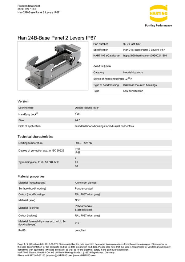 Obudowa montażowa Harting 09300241301 09 30 024 1301, odlew aluminium, 1 szt.