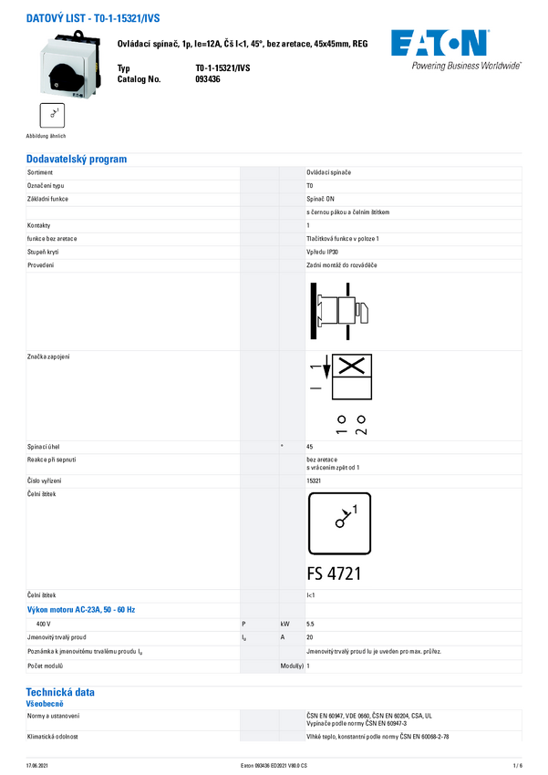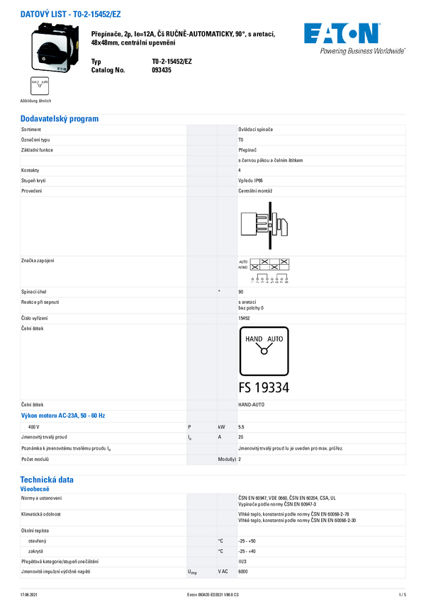 Eaton 093435 T0-2-15452/EZ Wyłącznik 1 szt.