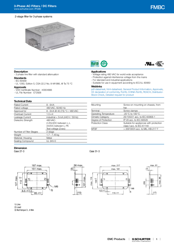 FMBC FILTER 3PH 2ST L 50A 480VAC